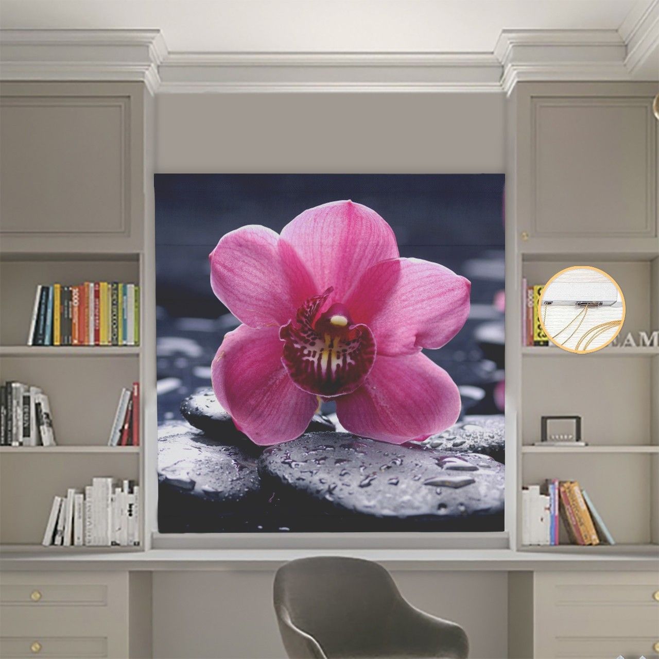 Римська штора з ланцюжковим карнизом Фотодрук Квітка Блекаут