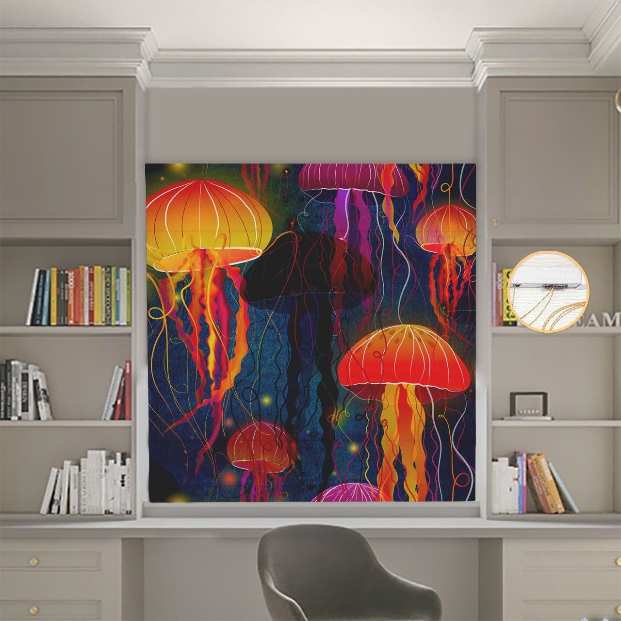 Римська штора з ланцюжковим карнизом Фотодрук Медуза Блекаут