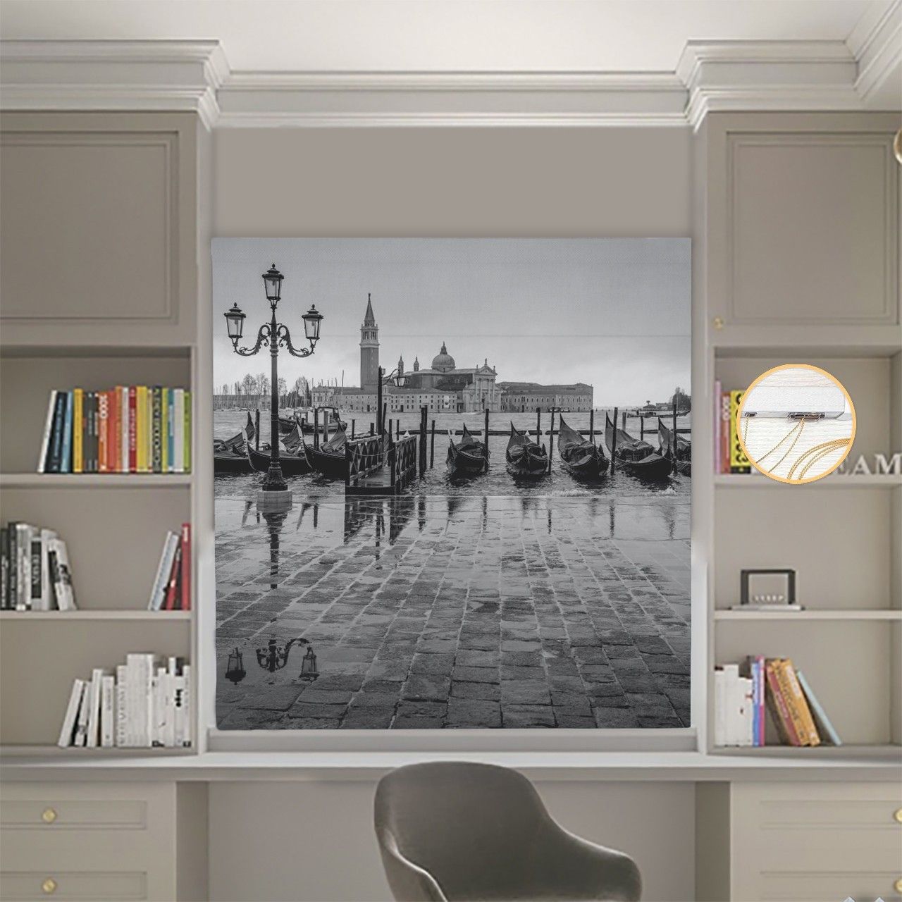 Римська штора з ланцюжковим карнизом Фотодрук Набережна Блекаут
