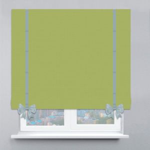 Римська штора Рогожка Дімаут з ланцюжковим карнизом з кантами та бантами салатовий