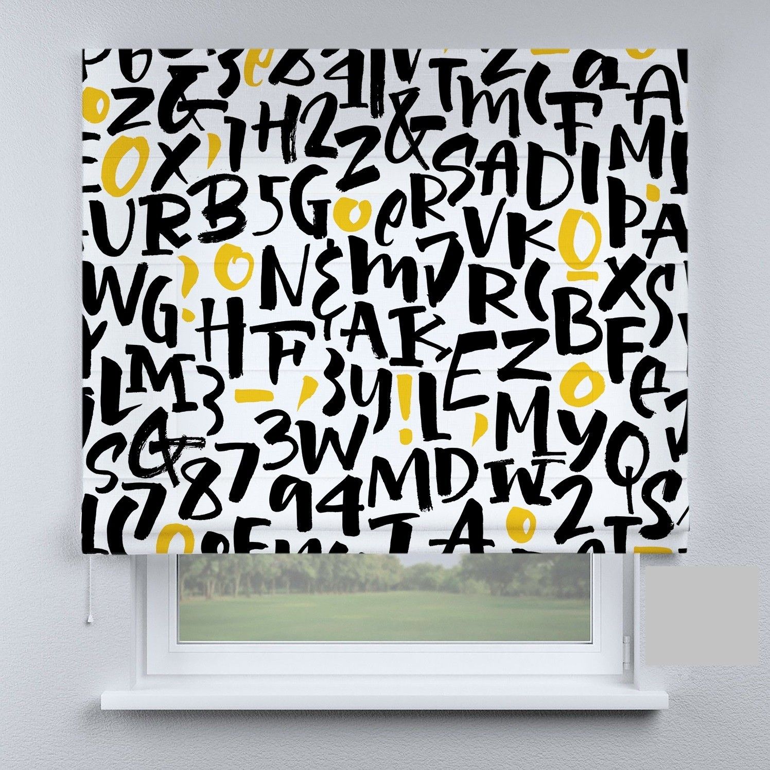 Римська штора з ланцюжковим карнизом букви жовто-чорні