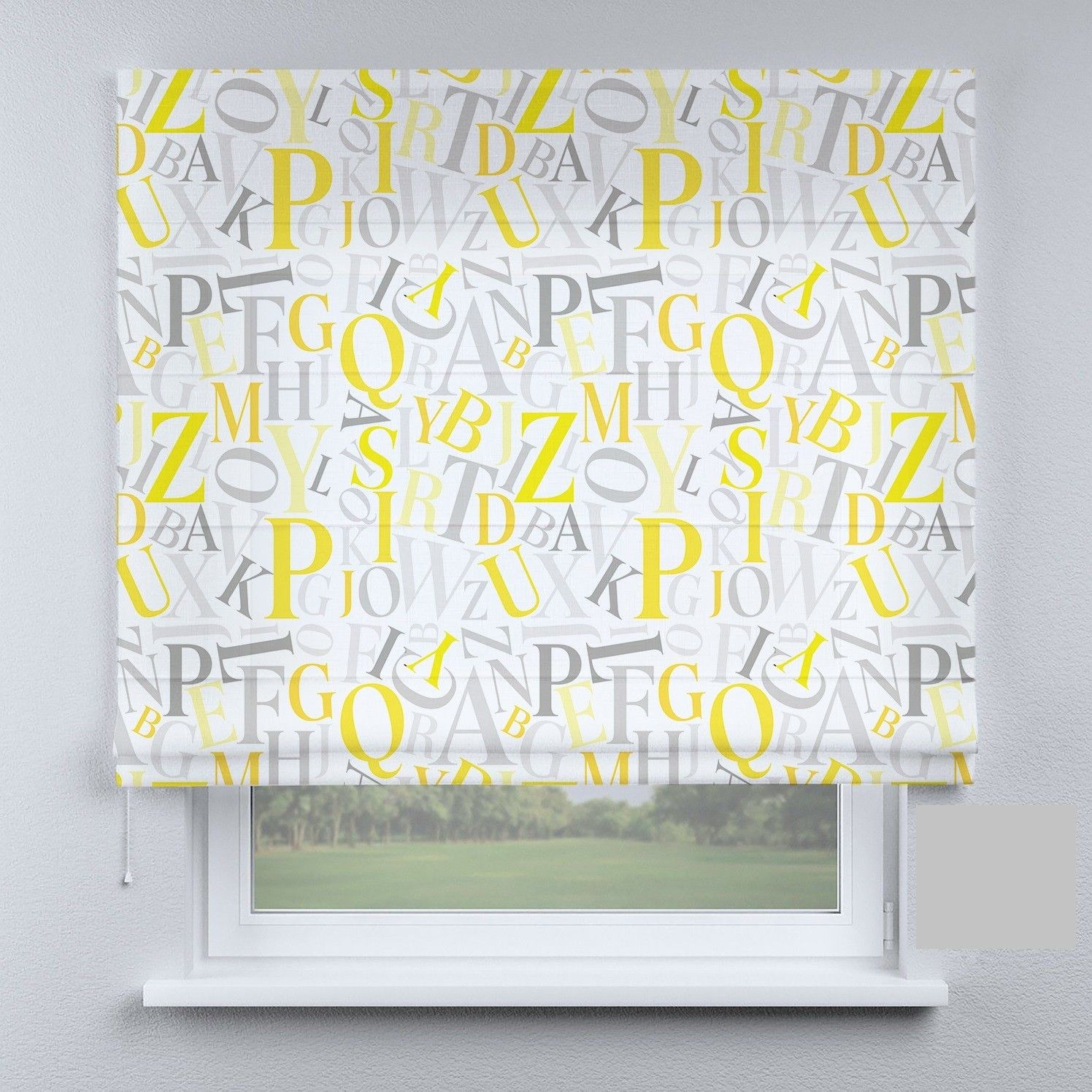 Римська штора з ланцюжковим карнизом букви жовто-сірі