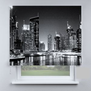 Римська штора з ланцюжковим карнизом чорно-біла набережна