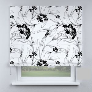 Римська штора з ланцюжковим карнизом чорно-білі гілки квітів