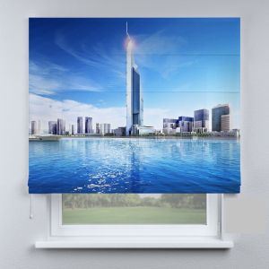 Римська штора з ланцюжковим карнизом хмарочос на березі затоки