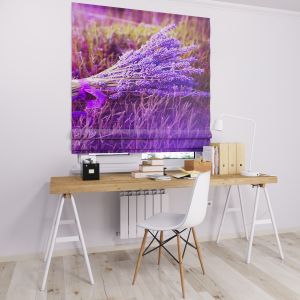 Римська штора з ланцюжковим карнизом квіти фіолетові