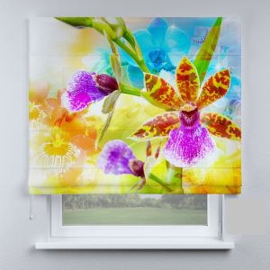 Римська штора з ланцюжковим карнизом квіти великі різнокольорові