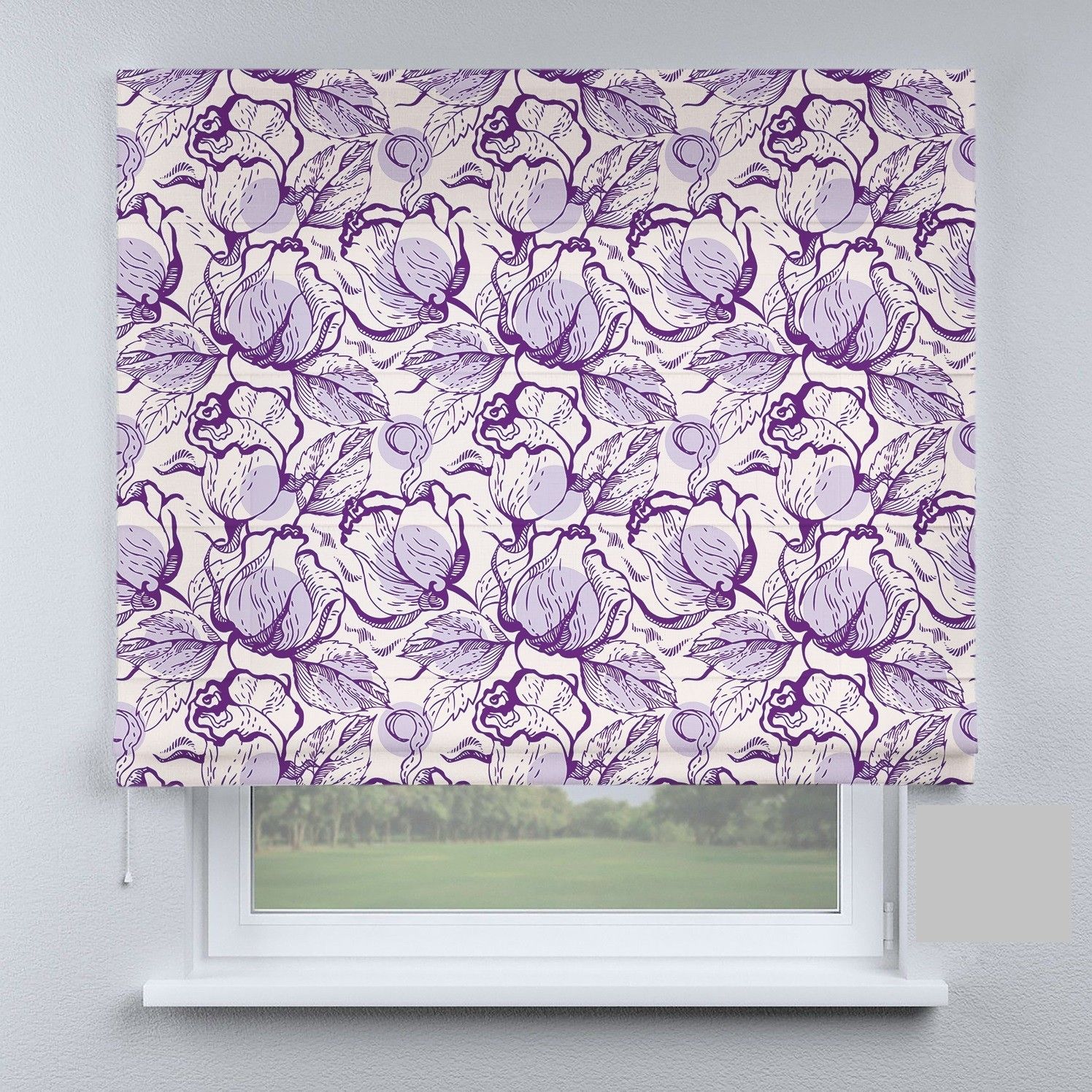 Римська штора з ланцюжковим карнизом квітки фіолетові