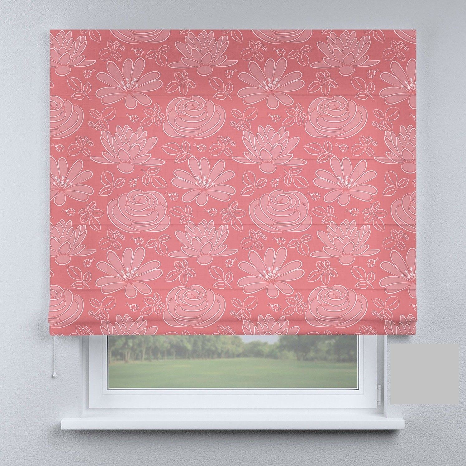 Римська штора з ланцюжковим карнизом лілії рожеві