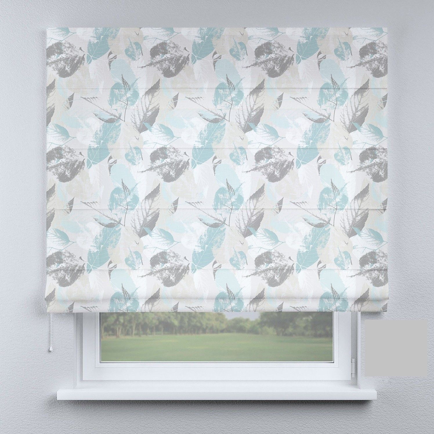 Римська штора з ланцюжковим карнизом листя бірюзові