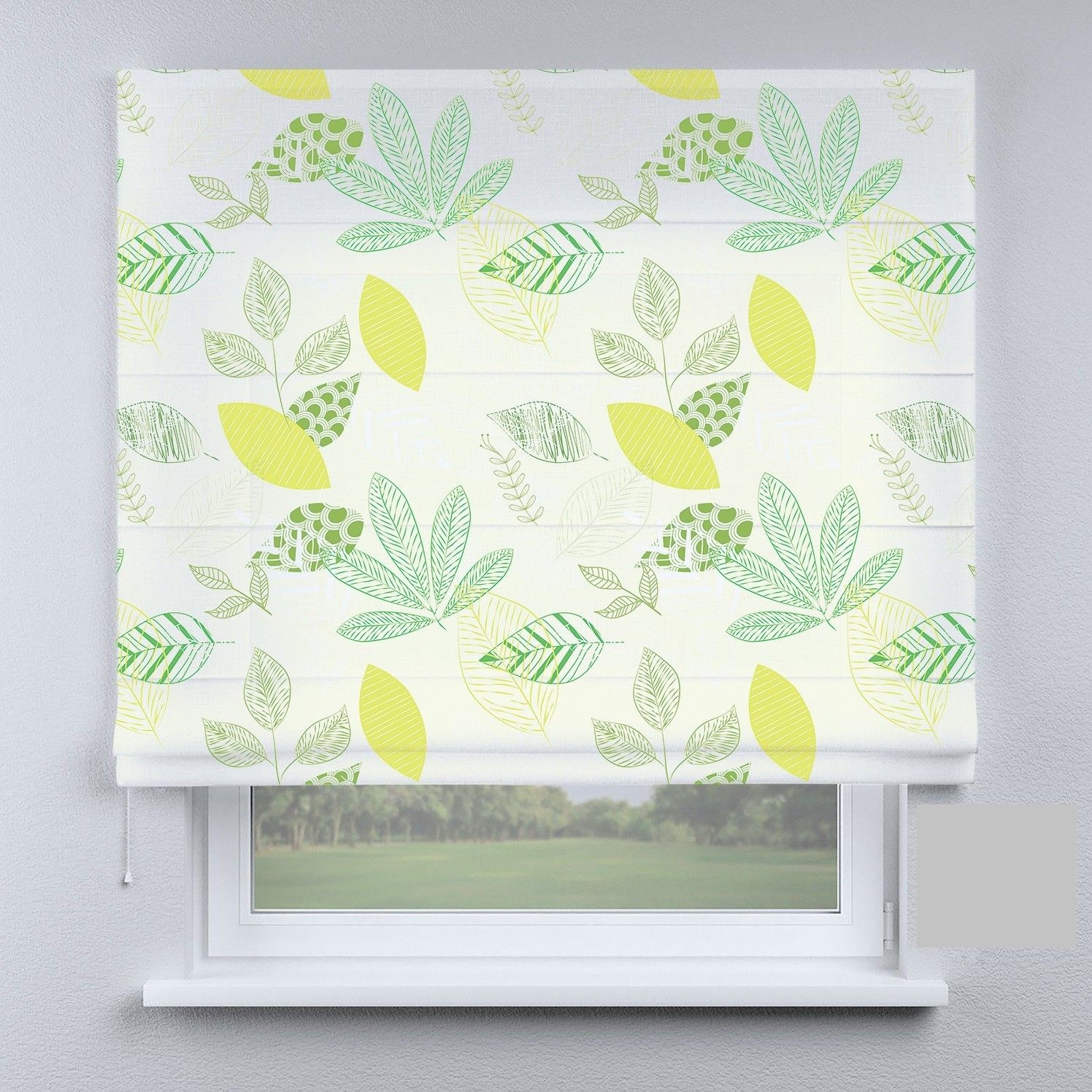 Римська штора з ланцюжковим карнизом листя різнокольорові маленькі