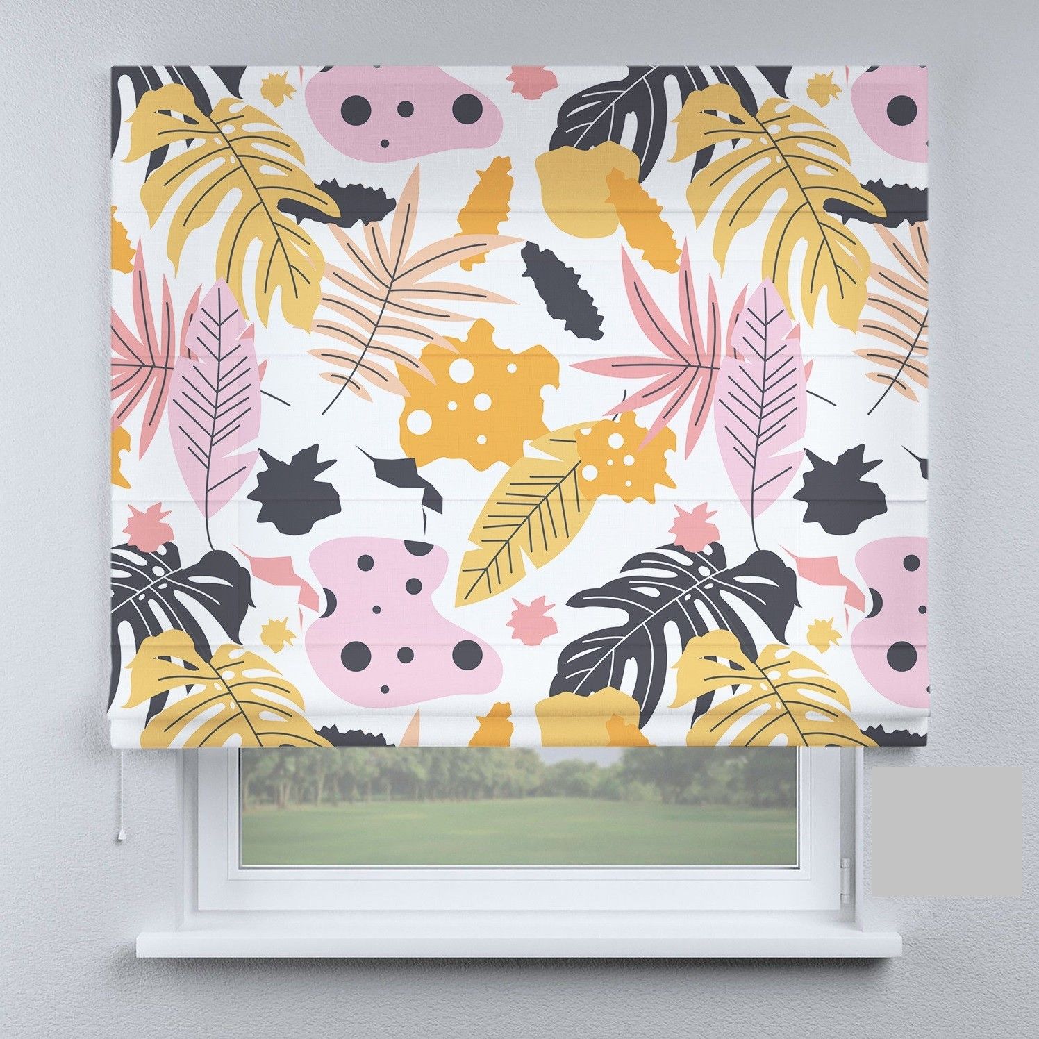 Римська штора з ланцюжковим карнизом листя рожеві