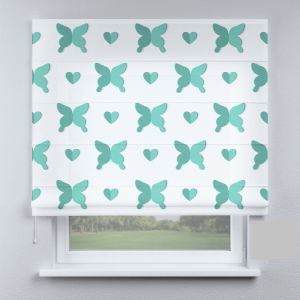 Римська штора з ланцюжковим карнизом метелики Каліма бірюзові
