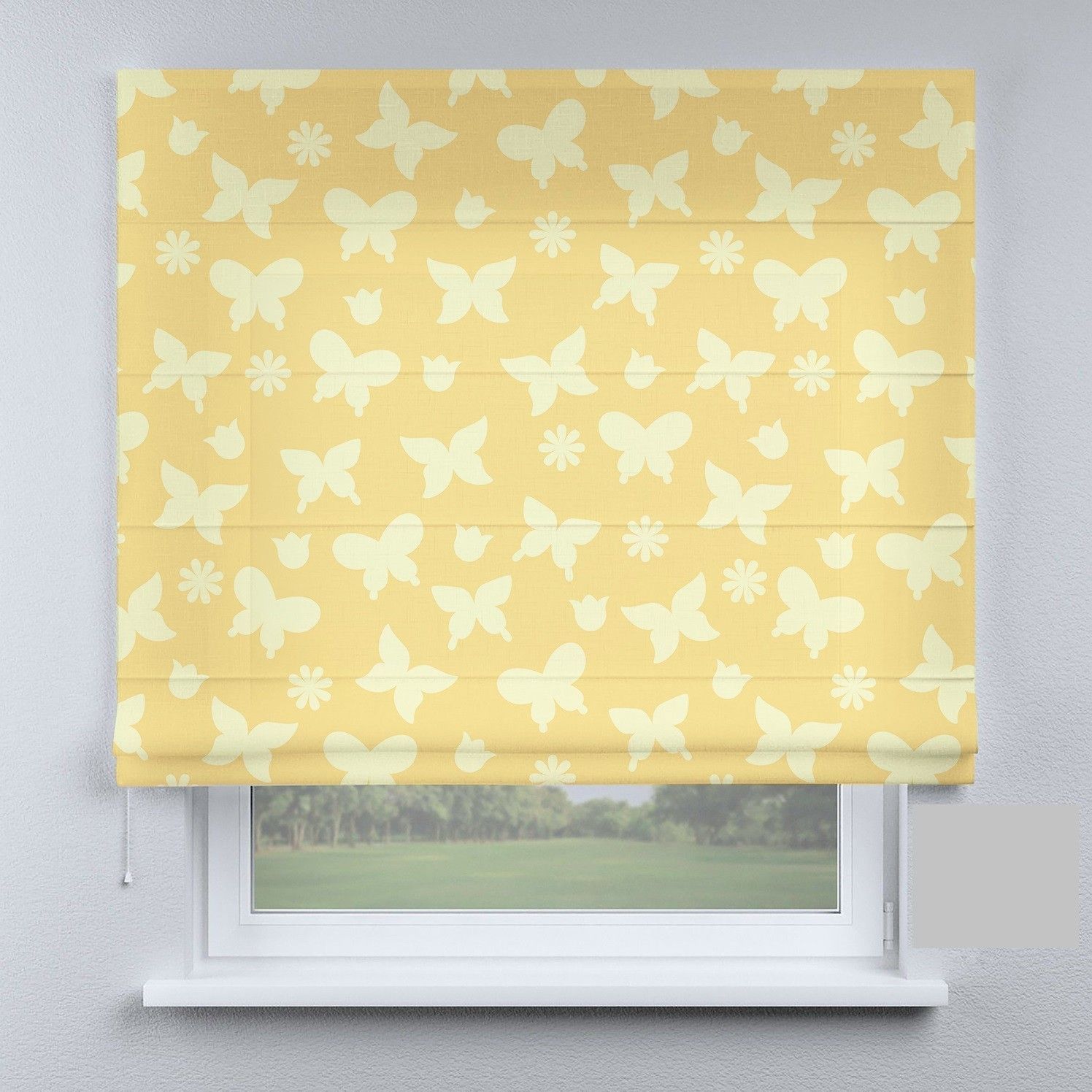 Римська штора з ланцюжковим карнизом метелики на жовтому фоні