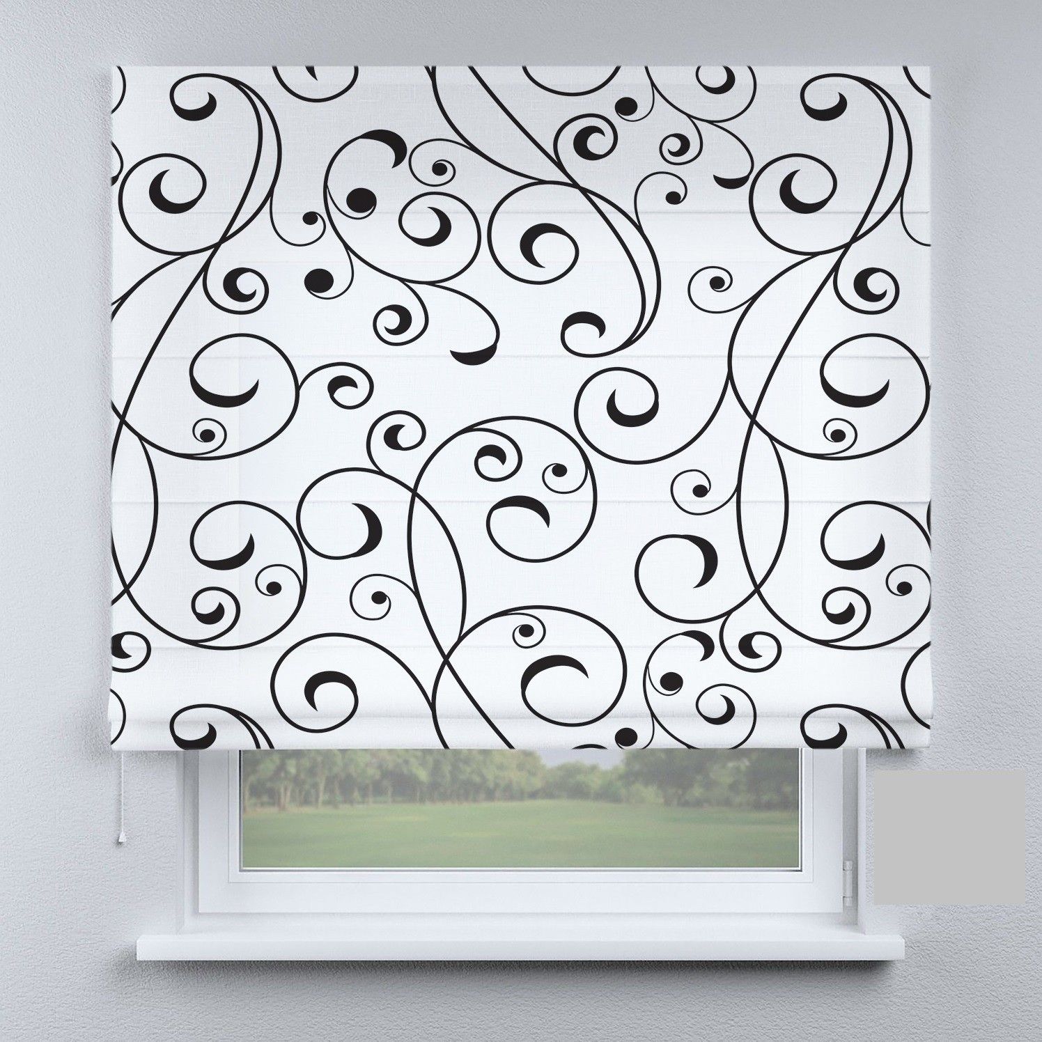 Римська штора з ланцюжковим карнизом модерн з вензелями чорними