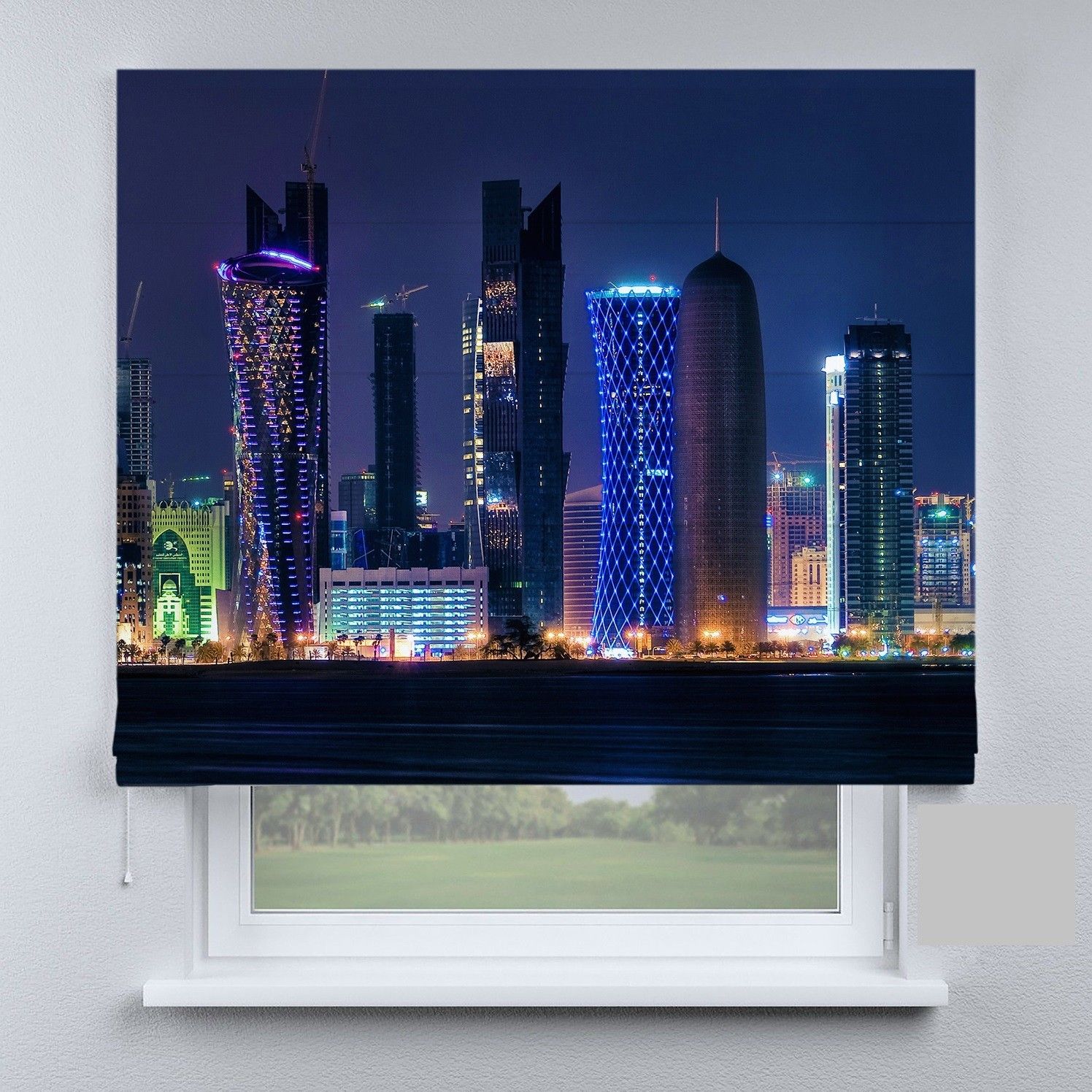 Римська штора з ланцюжковим карнизом нічне місто різнокольорове