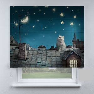 Римська штора з ланцюжковим карнизом нічне небо з котом