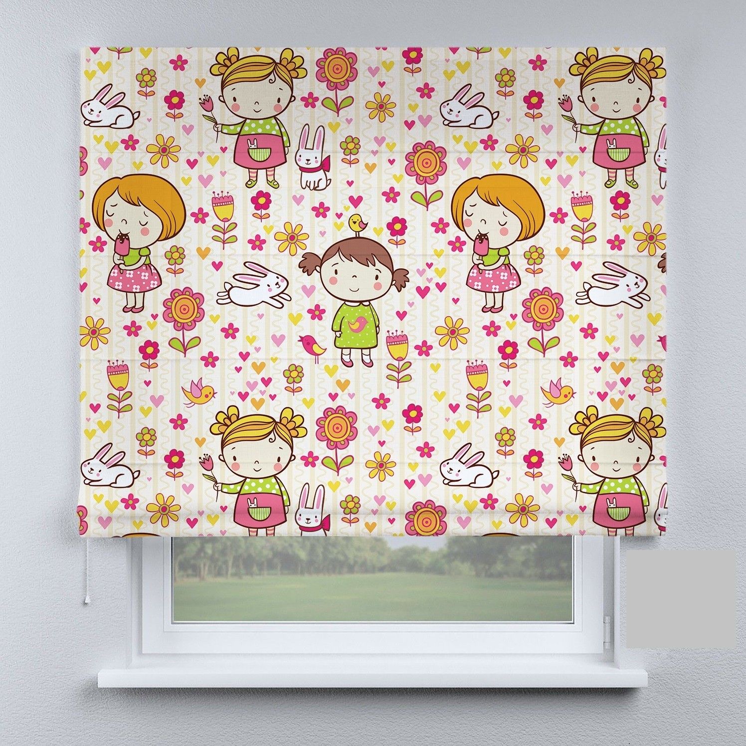 Римська штора з ланцюжковим карнизом різнокольорові ляльки
