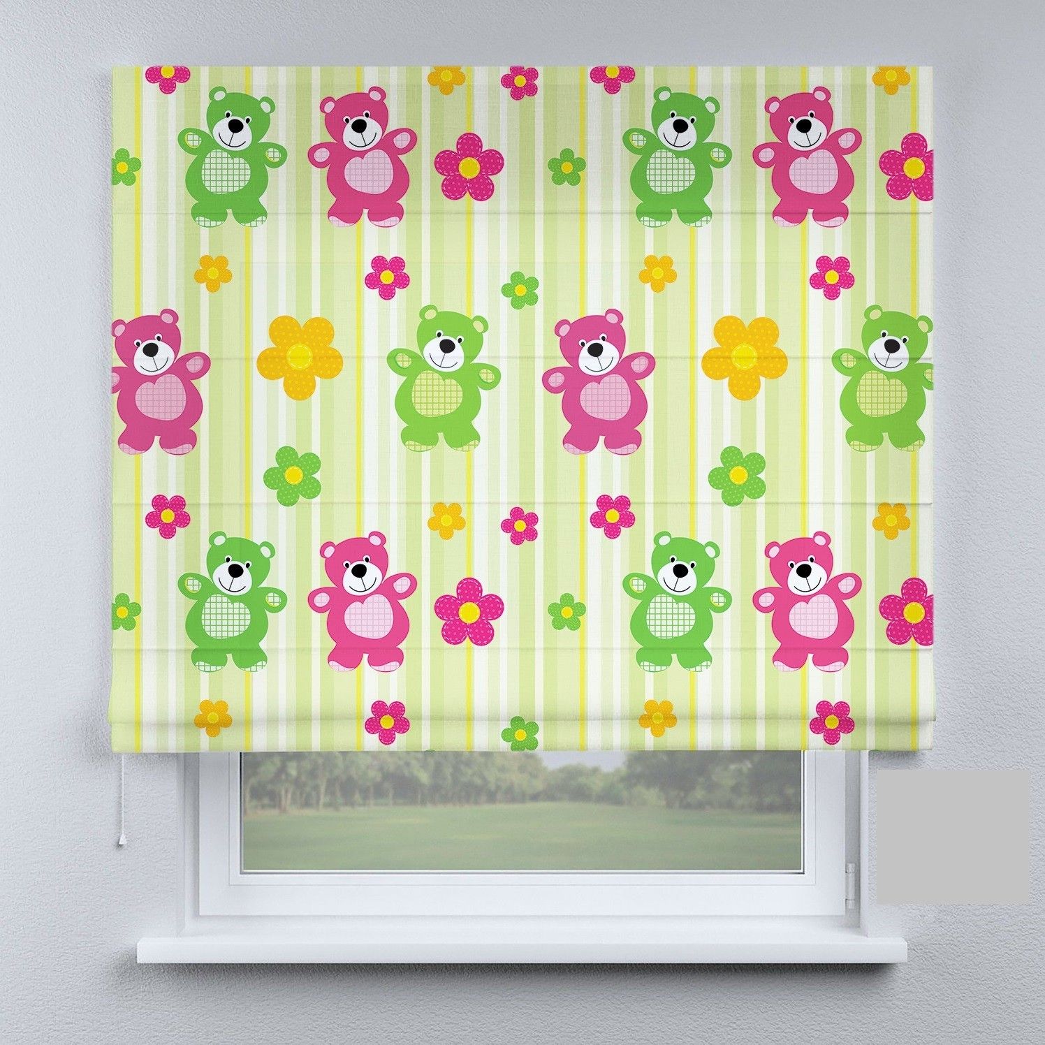 Римська штора з ланцюжковим карнизом різнокольорові ведмедики