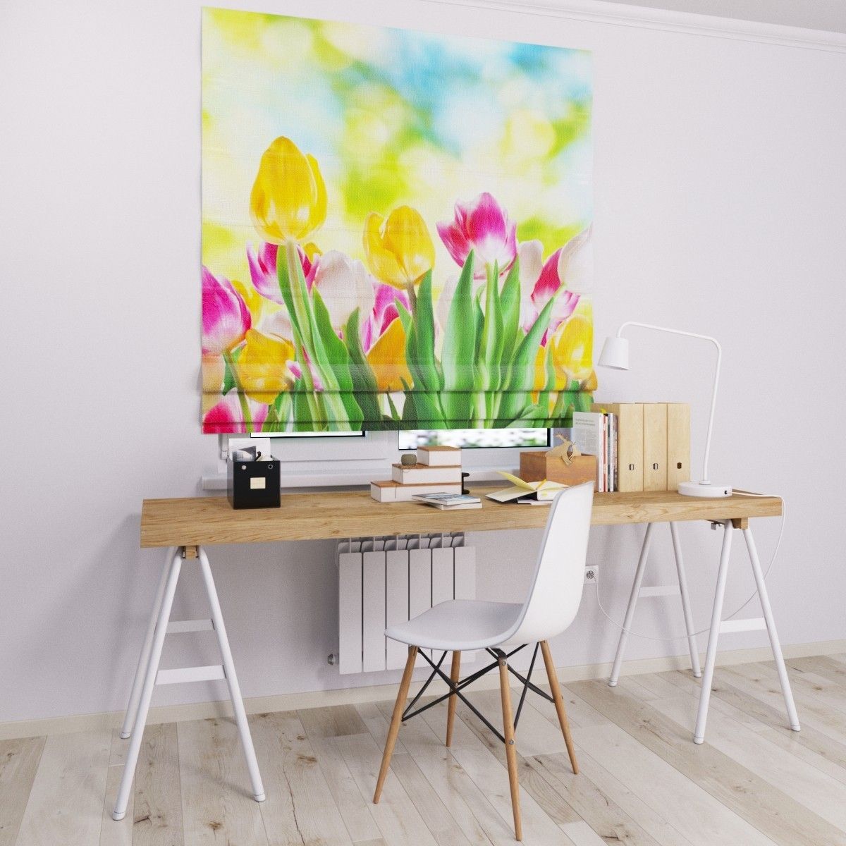 Римська штора з ланцюжковим карнизом тюльпани