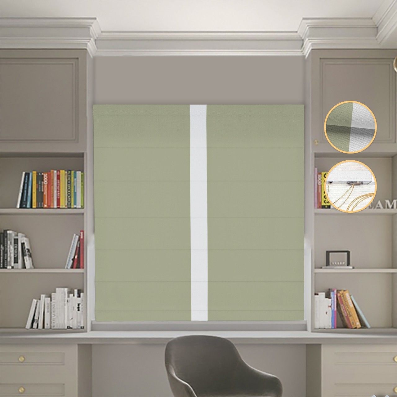 Римська штора Блекаут Нова оливковий з світло-сірим кантом по центру