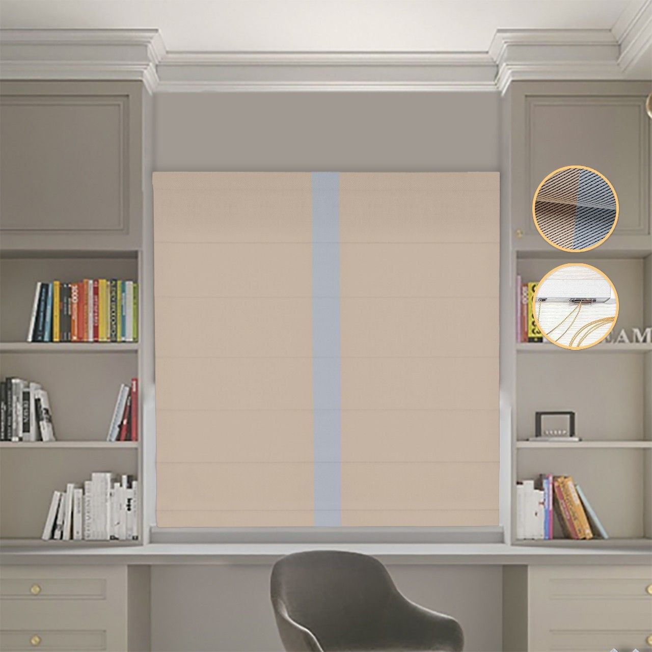 Римська штора Блекаут Перфект бежевий з світло-сірим кантом по центру