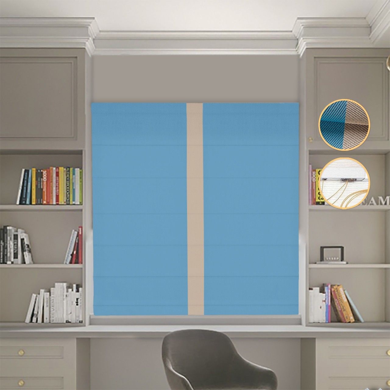 Римська штора Блекаут Перфект блакитний з бежевим кантом по центру