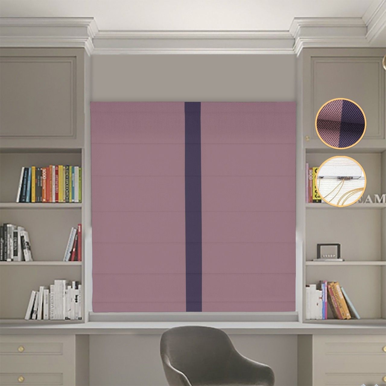 Римська штора Блекаут Перфект пудровий з бузковим кантом по центру