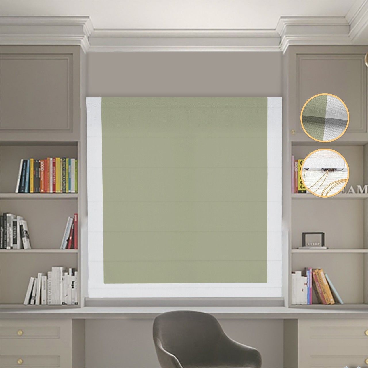 Римська штора Блекаут Нова оливковий з світло-сірим кантом