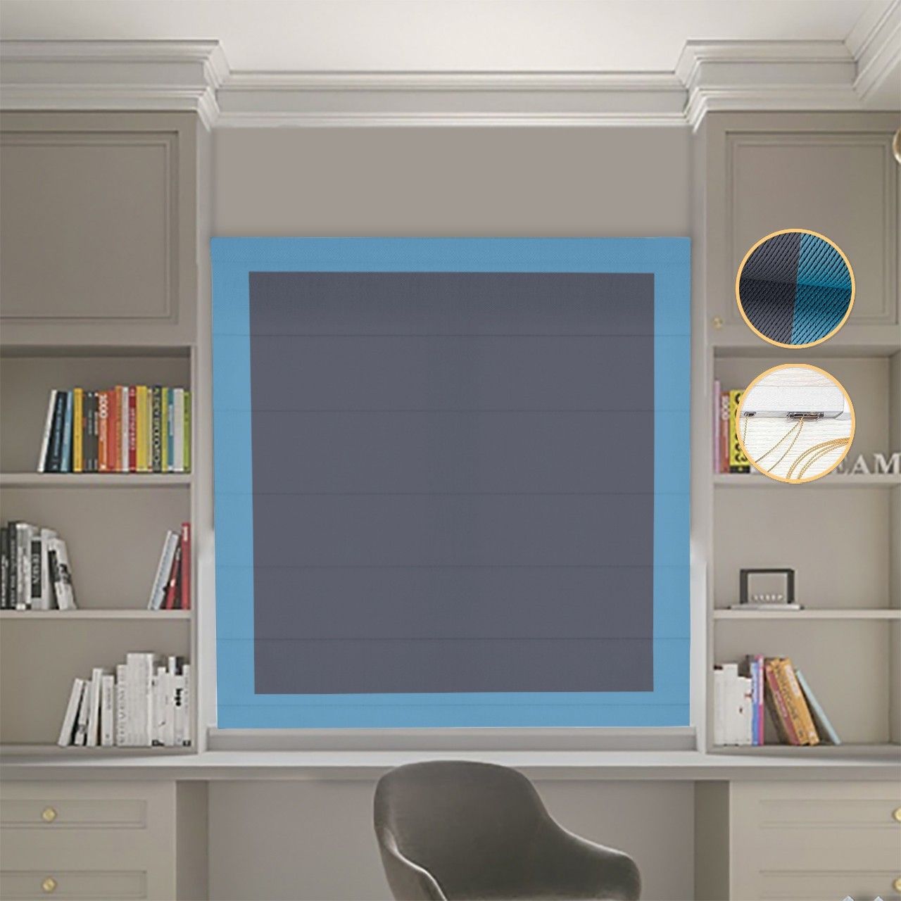 Римська штора Блекаут Перфект графітовий з блакитними кантами