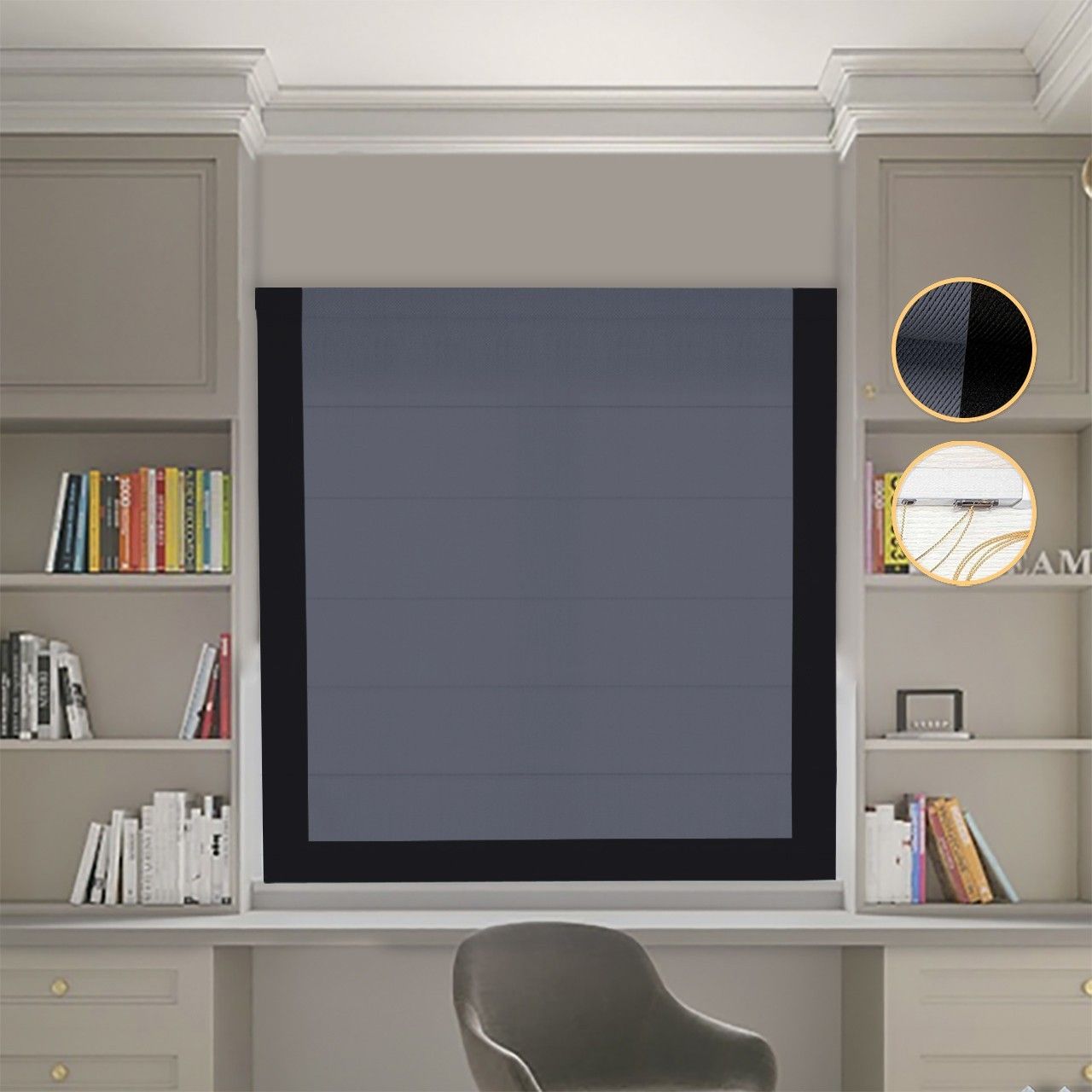 Римська штора Блекаут Перфект графітовий з чорним кантом
