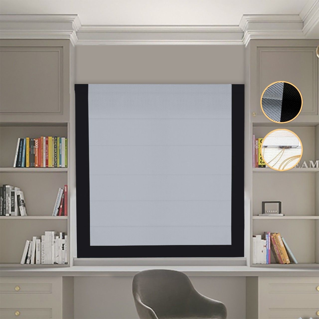 Римські штори з кантами на мотузковому карнизі DimShtor - це сучасні, функціональні та практичні штори.