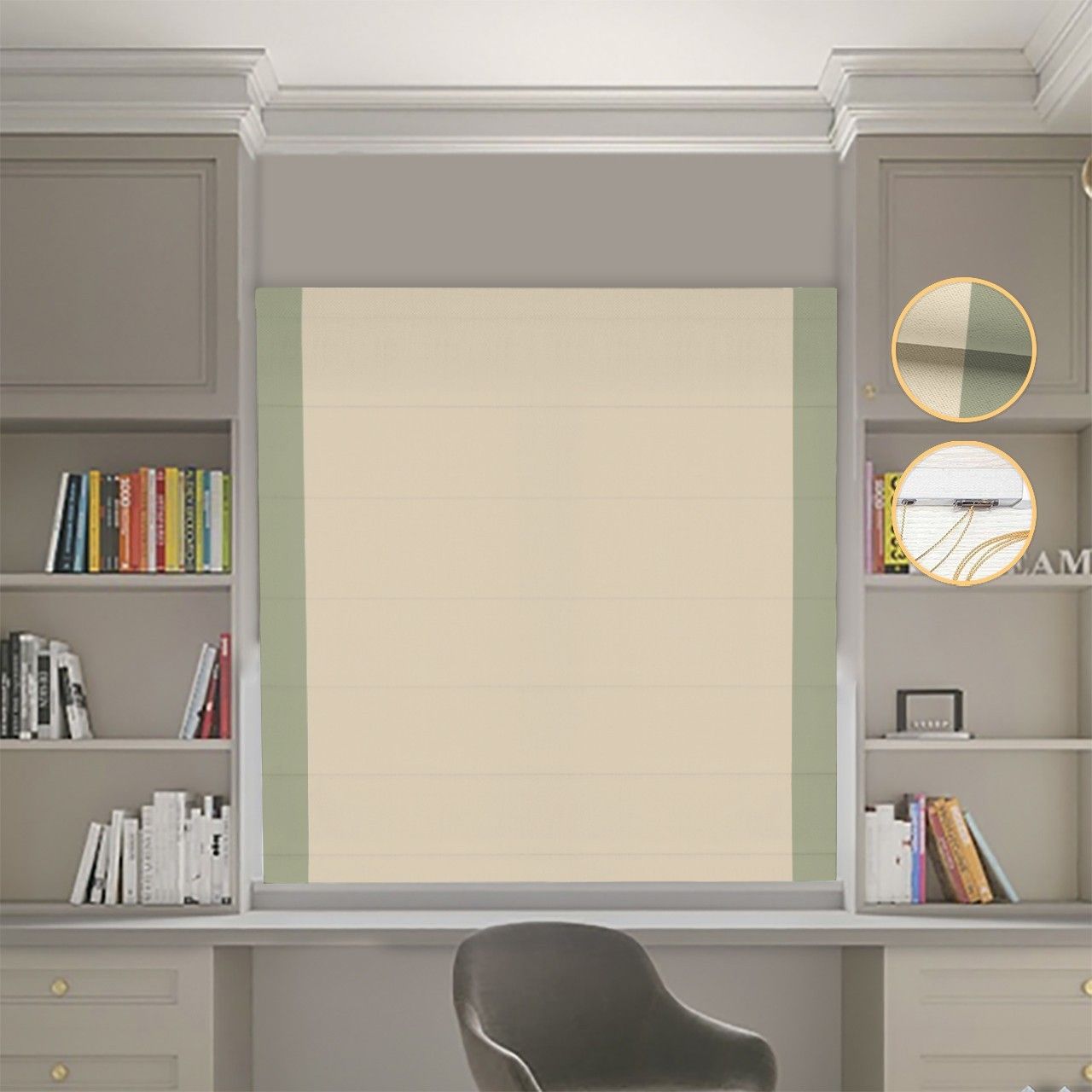 Римська штора Блекаут Нова бежевий з оливковими кантами по боках