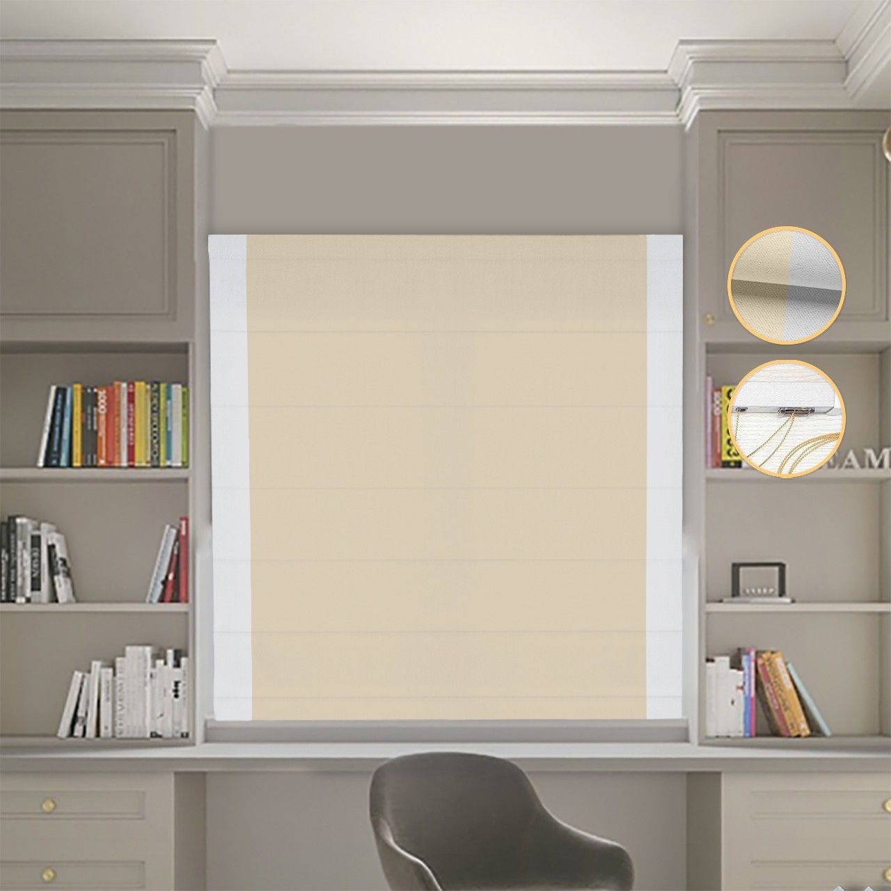 Римська штора Блекаут Нова бежевий з світло-сірими кантами по боках