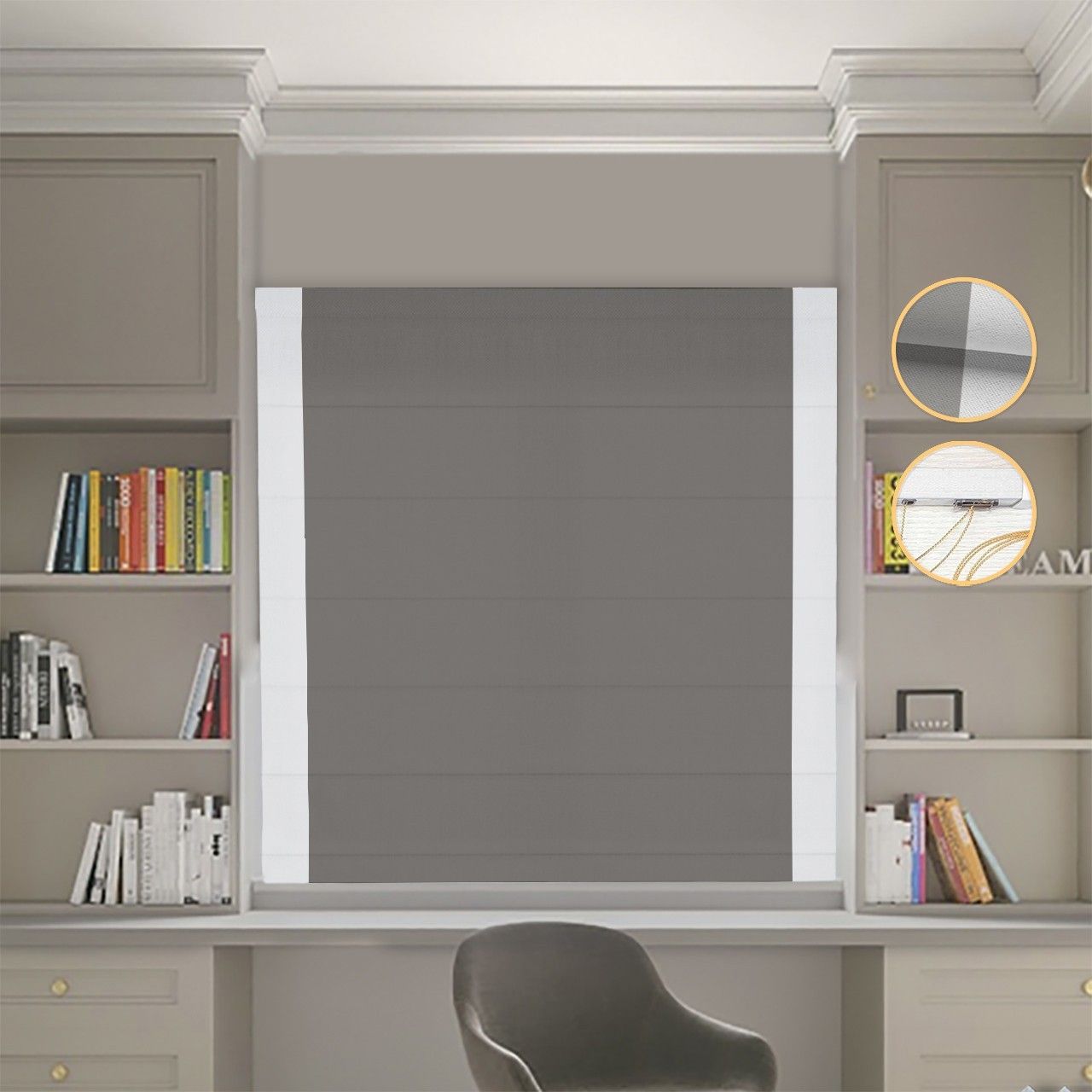 Римська штора Блекаут Нова графітовий з світло-сірими кантами по боках