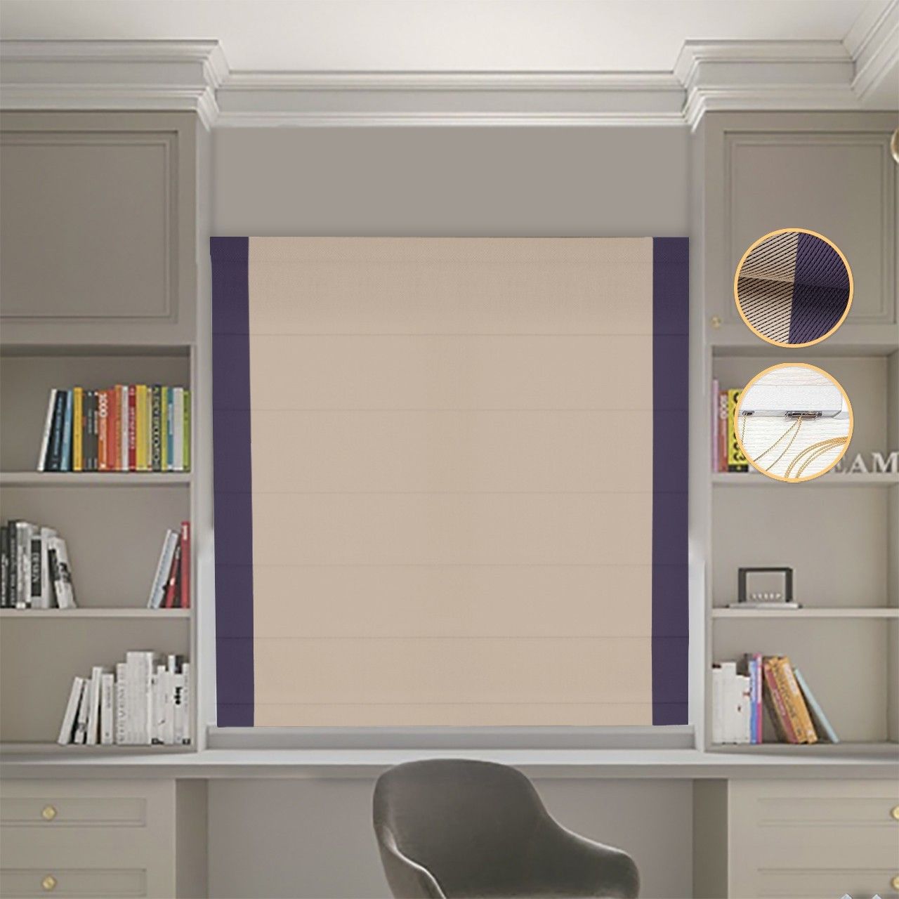 Римська штора Блекаут Перфект бежевий з бузковими кантами по боках