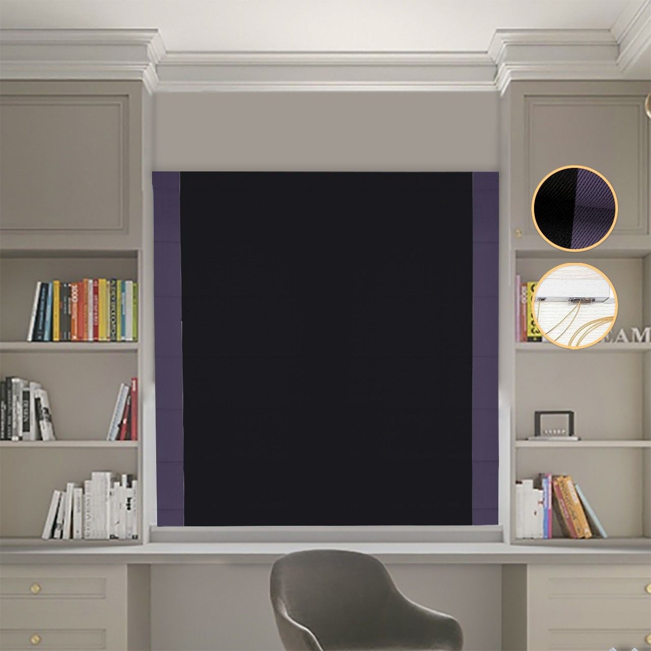 Римська штора Блекаут Перфект чорний з бузковими кантами по боках