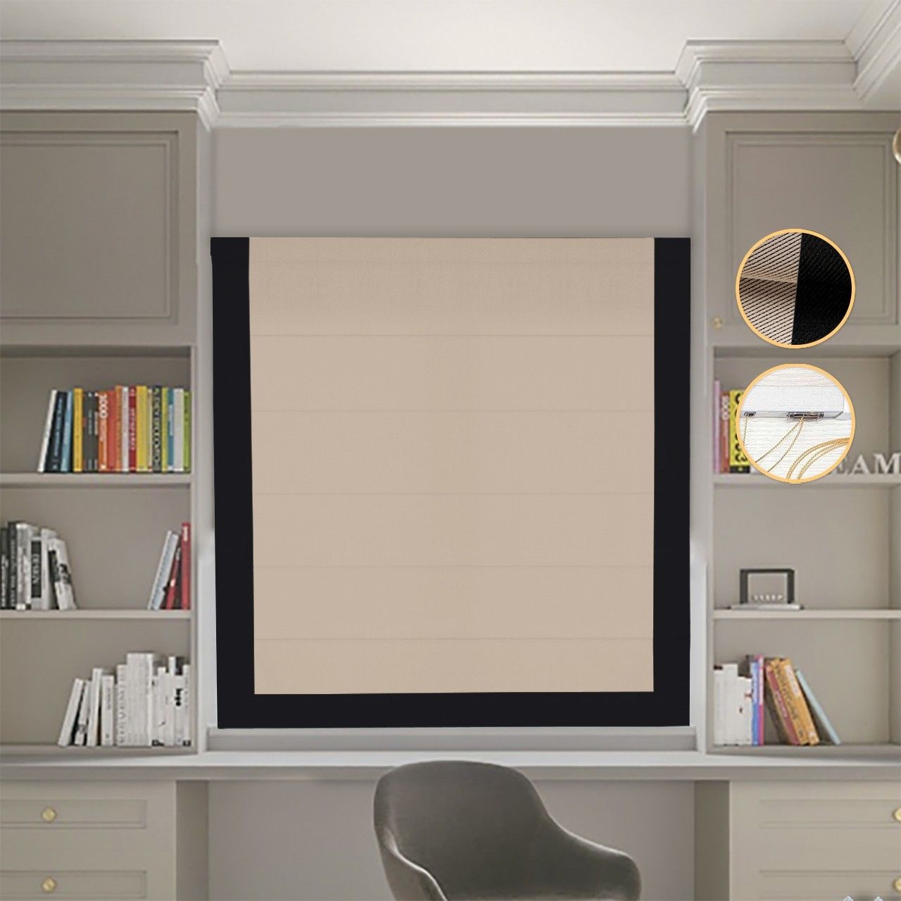 Римська штора Блекаут Перфект з ланцюжковим карнизом бежевий з чорним кантом