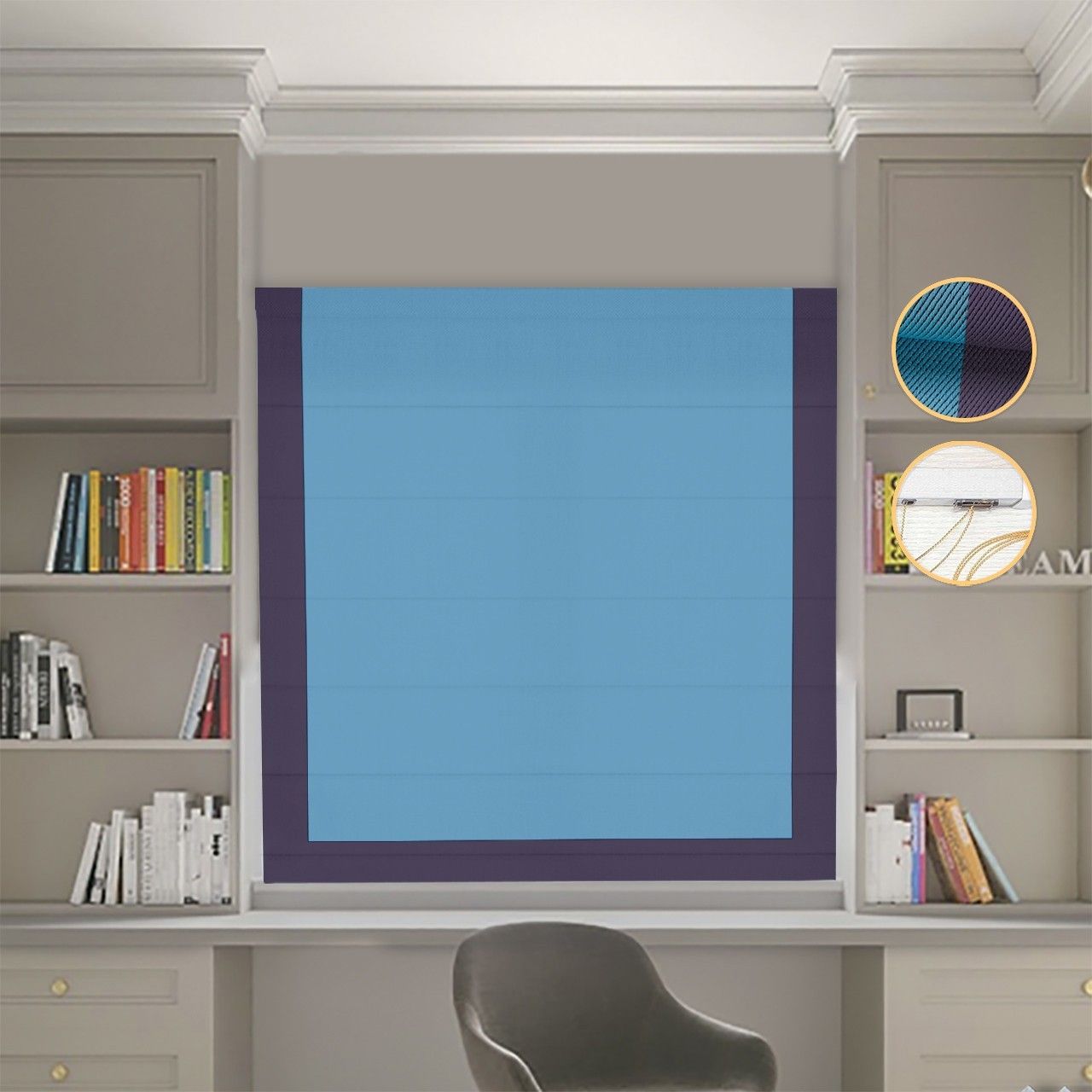 Римська штора Блекаут Перфект з ланцюжковим карнизом блакитний з бузковим кантом