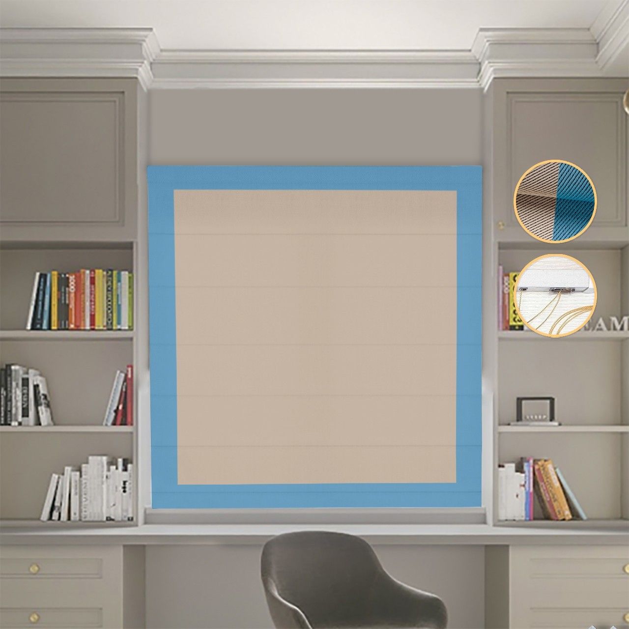 Римська штора Блекаут Перфект з ланцюжковим карнизом бежевий з блакитними кантами