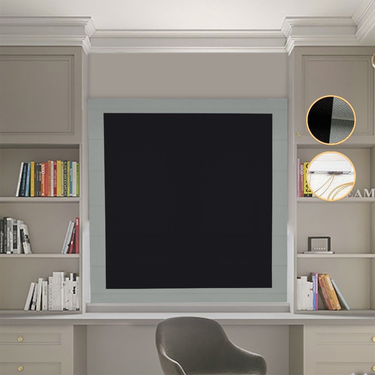 Римська штора Блекаут Перфект з ланцюжковим карнизом чорний з оливковими кантами