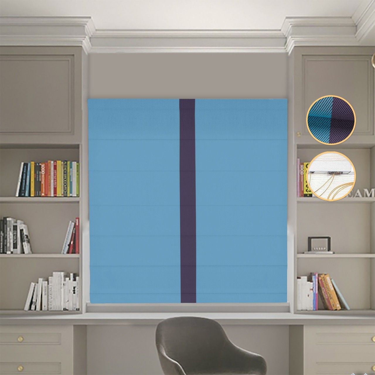 Римська штора Блекаут Перфект з ланцюжковим карнизом блакитний з бузковим кантом по центру