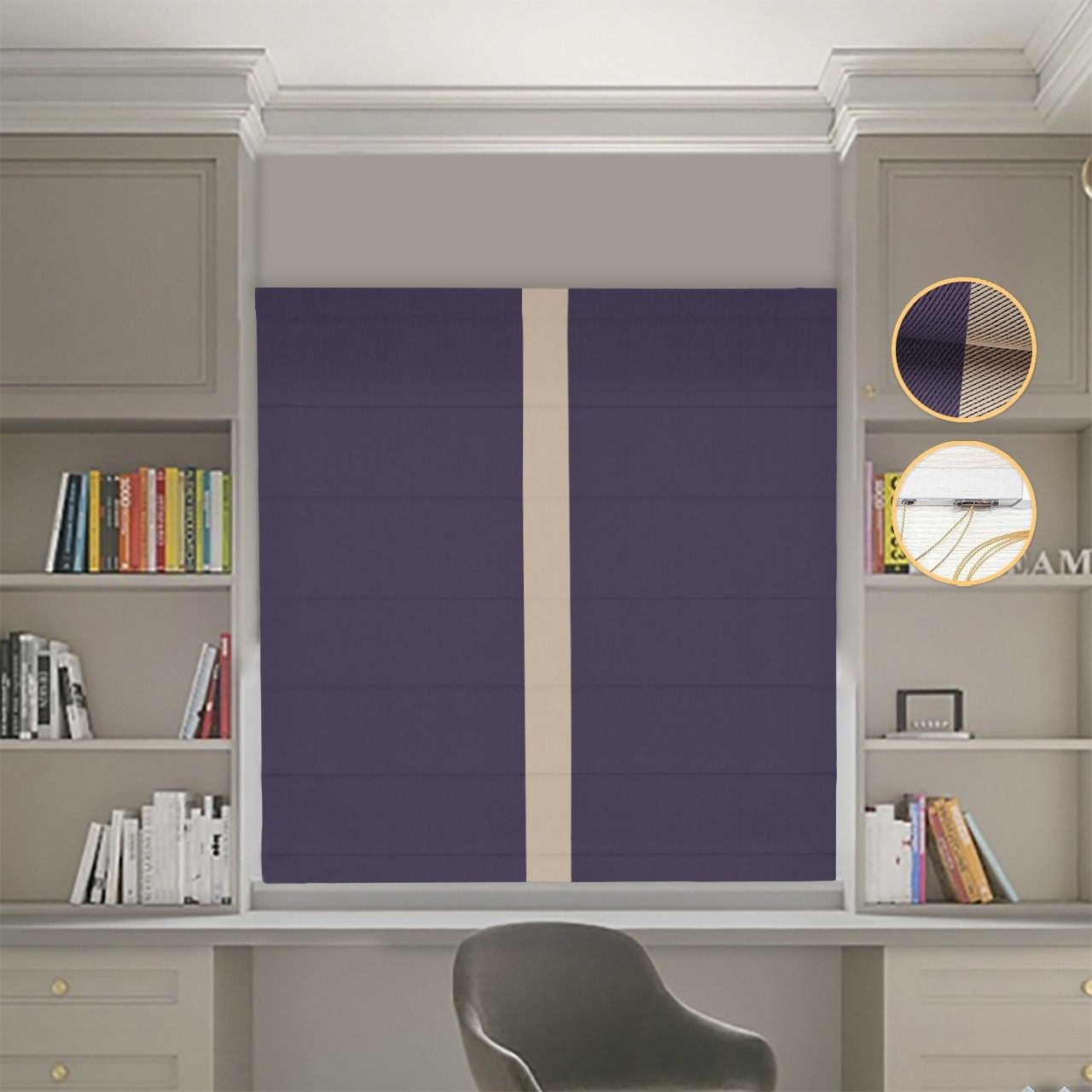 Римська штора Блекаут Перфект з ланцюжковим карнизом бузковий з бежевим кантом по центру