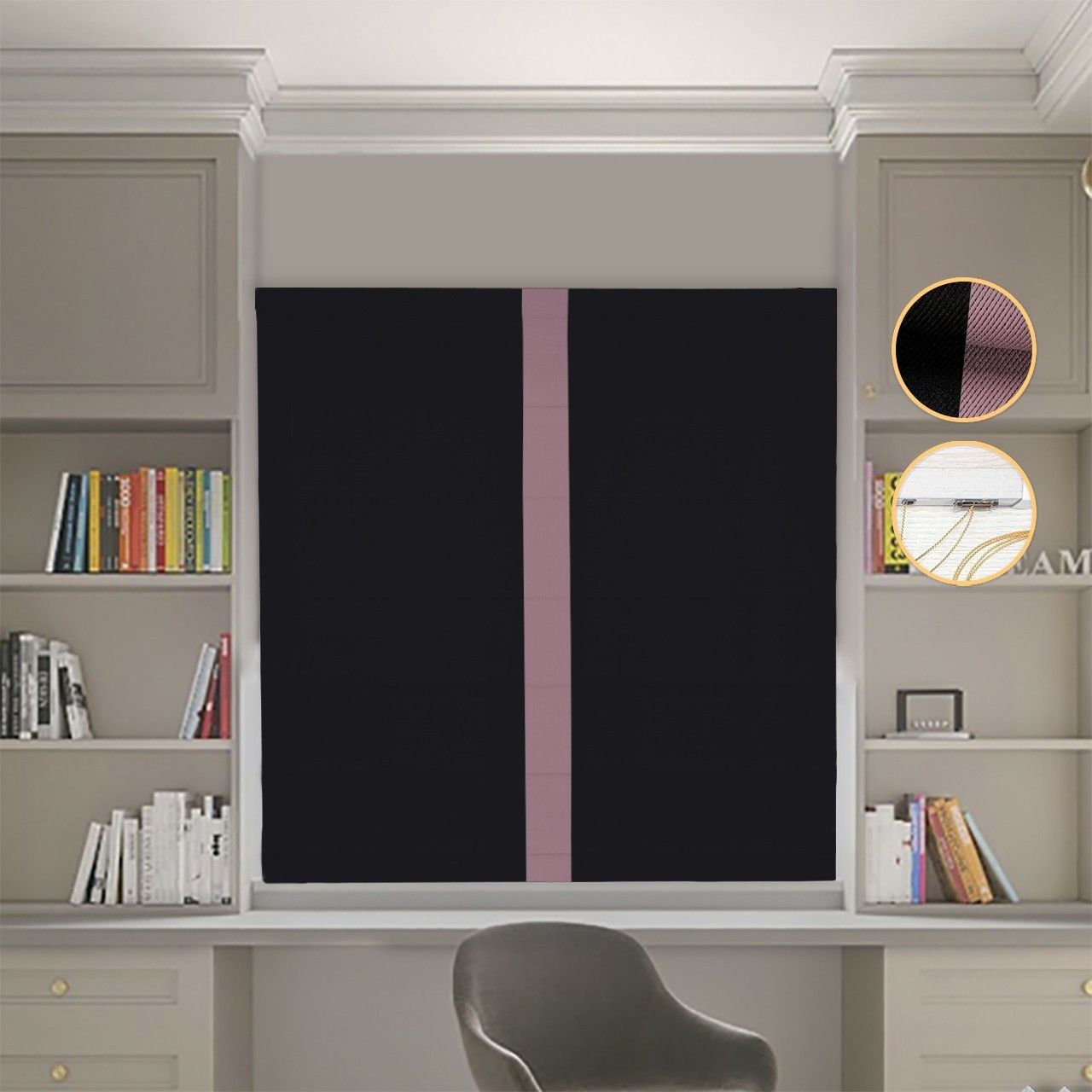 Римська штора Блекаут Перфект з ланцюжковим карнизом чорний з пудровим кантом по центру