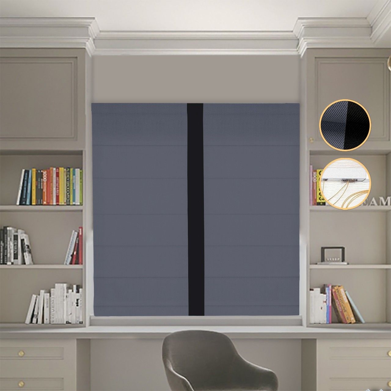 Римська штора Блекаут Перфект з ланцюжковим карнизом графітовий з чорним кантом по центру