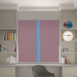 Римська штора Блекаут Перфект з ланцюжковим карнизом пудровий з блакитним кантом по центру
