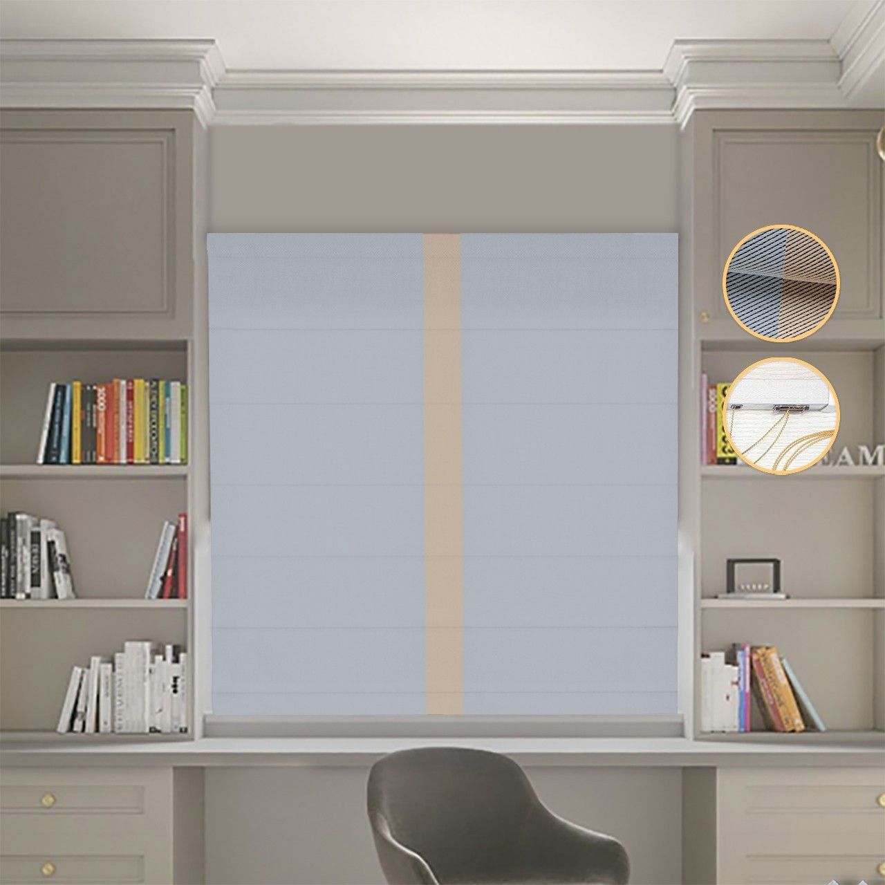Римська штора Блекаут Перфект з ланцюжковим карнизом світло-сірий з бежевим кантом по центру