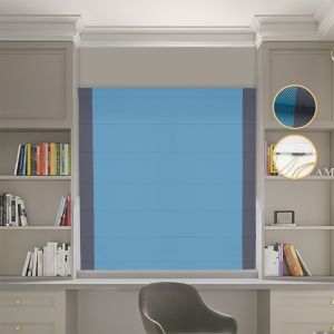 Римська штора Блекаут Перфект з ланцюжковим карнизом блакитний з графітовими кантами по боках
