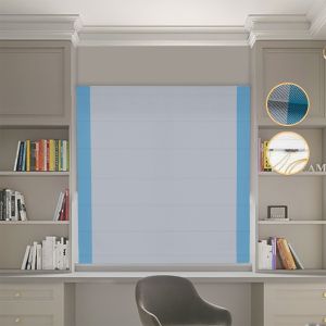 Римська штора Блекаут Перфект з ланцюжковим карнизом світло-сірий з блакитними кантами по боках