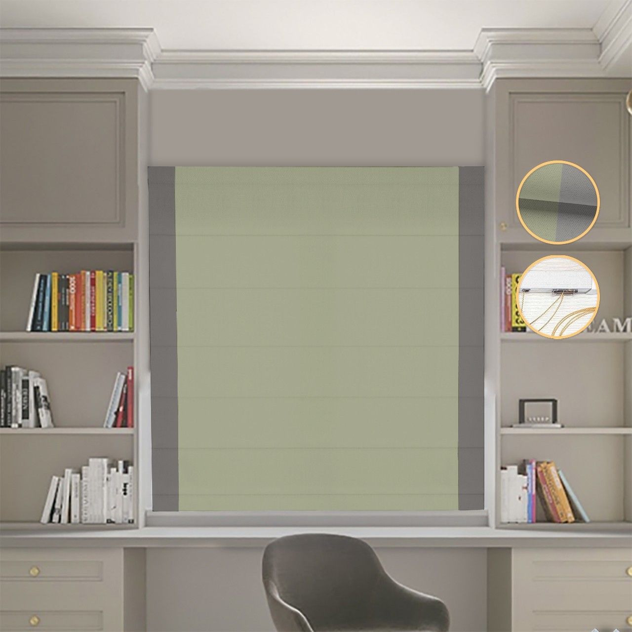 Римська штора DECOLIV Блэкаут Нова оливковий с графитовыми кантами по бокам